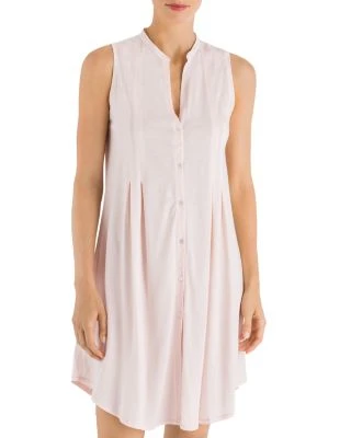 - Button front, pleating detail, sleeveless, pullover style